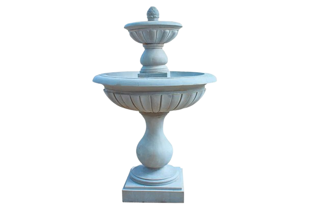 It is a multi-tiered fountain, with water gracefully cascading down each level. This creates a soothing sound and a visually appealing spectacle that can captivate any onlooker. The fountain is adorned with intricately carved figures and patterns, adding a touch of elegance and sophistication to its overall appearance.