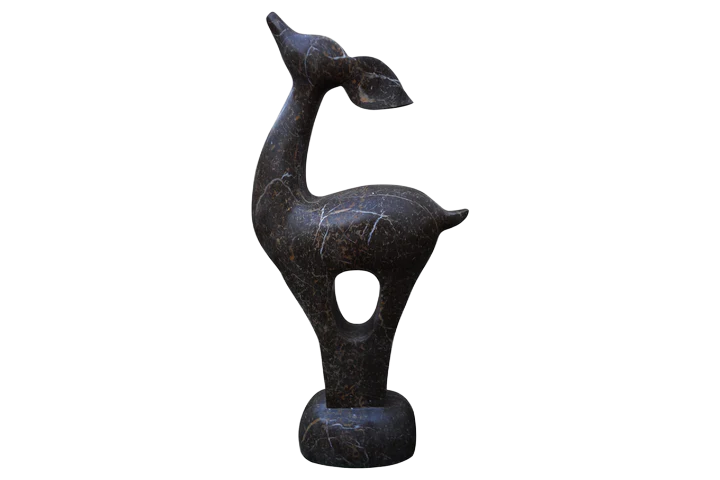 This abstract sculpture of a deer features smooth curves and a minimalist design, capturing a sense of elegance and grace in its posture.