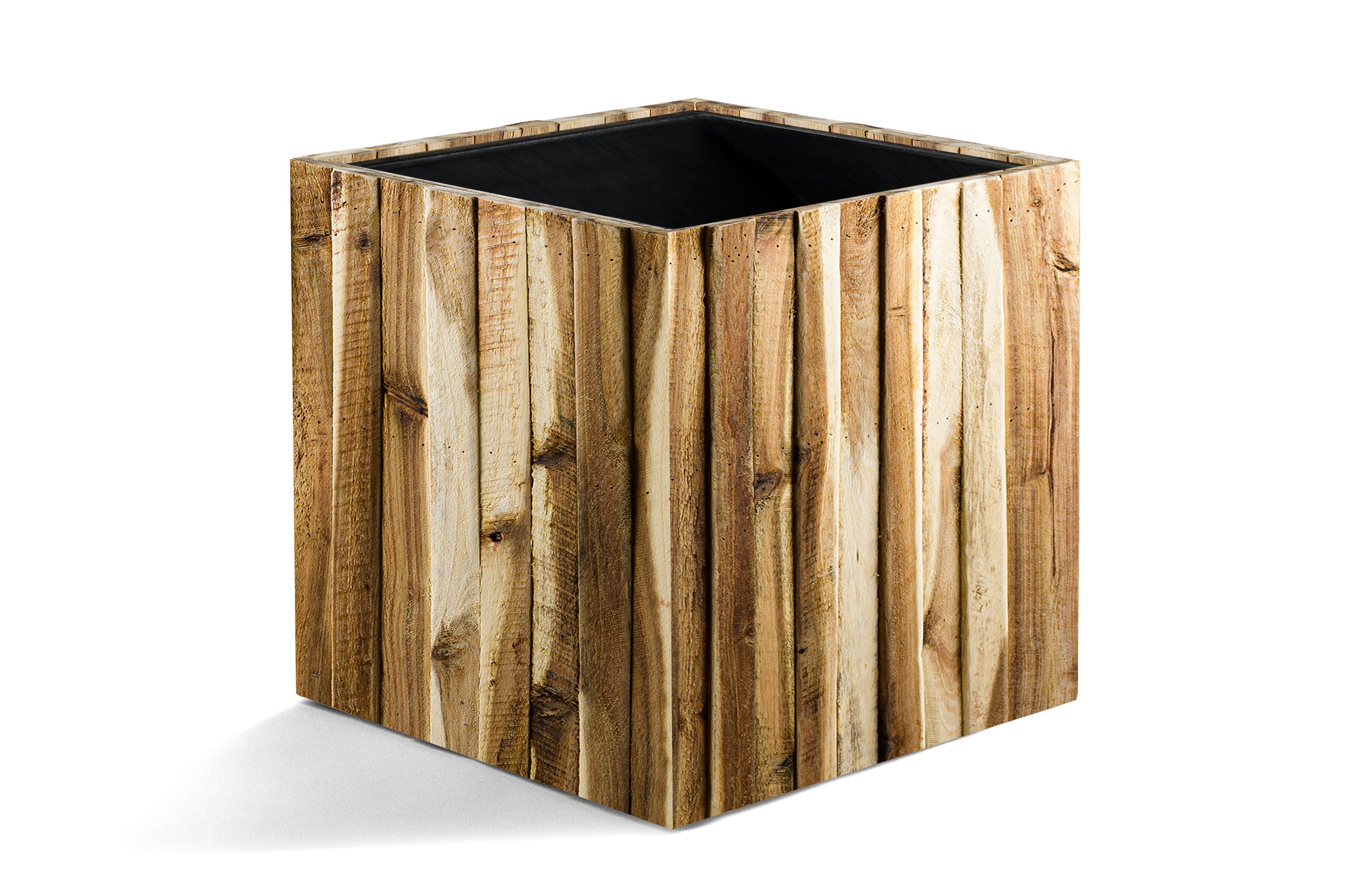 This planter is a stunning piece crafted from rich, sustainably sourced tropical wood, bringing a touch of paradise to any space. Its warm hues and natural grain patterns make each planter unique, while the smooth, polished finish enhances its elegant appearance. Designed to withstand the elements, the planter is perfect for both indoor and outdoor use, providing a beautiful home for your favorite plants. Its sturdy construction ensures durability, and its spacious interior offers ample room for roots to thrive. It comes along with watertight inserts made of recycled plastic. Whether adorning a patio, balcony, or living room, it captures the essence of tropical beauty and serenity.