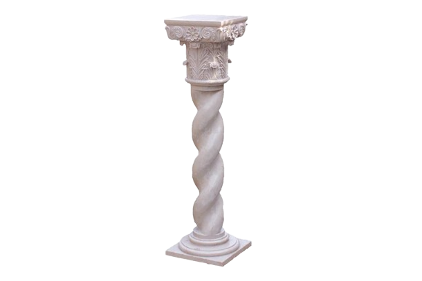 This pedestal features a tall, intricately designed column with a twisted or spiral shaft. The capital (top part) is adorned with floral and leaf motifs, giving it a classical and ornate look, reminiscent of Corinthian architectural styles. The base is simple and rounded, allowing the intricacies of the spiral column and floral decorations to stand out. This pedestal would be ideal for displaying sculptures, vases, or decorative items, blending well in both traditional and contemporary settings. Suitable for indoors and outdoors both.