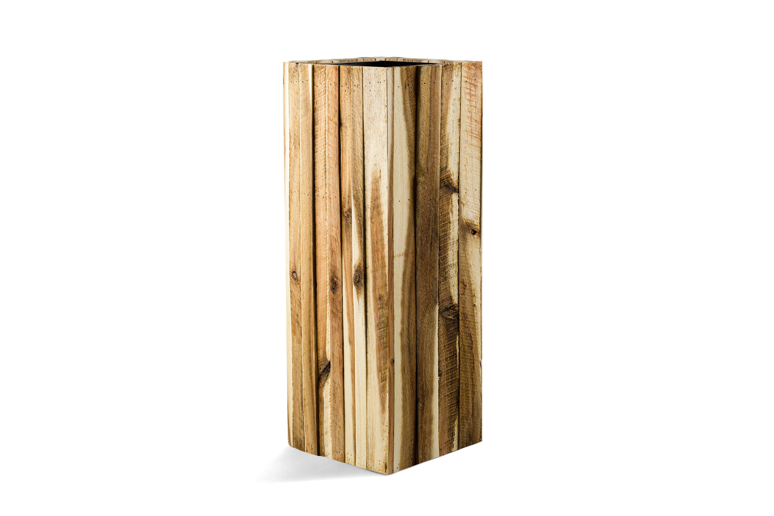 This planter is a stunning piece crafted from rich, sustainably sourced tropical wood, bringing a touch of paradise to any space. Its warm hues and natural grain patterns make each planter unique, while the smooth, polished finish enhances its elegant appearance. Designed to withstand the elements, the planter is perfect for both indoor and outdoor use, providing a beautiful home for your favorite plants. Its sturdy construction ensures durability, and its spacious interior offers ample room for roots to thrive. It comes along with watertight inserts made of recycled plastic. Whether adorning a patio, balcony, or living room, it captures the essence of tropical beauty and serenity.