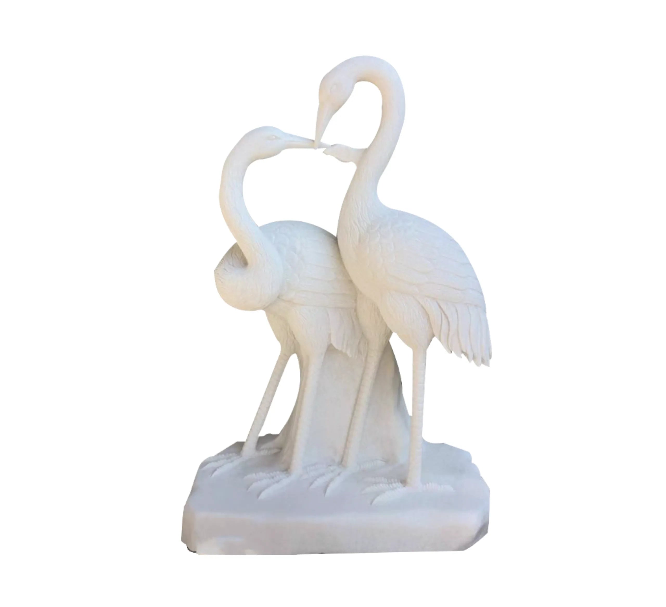 Eternal Elegance is a graceful marble sculpture featuring two swans standing side by side, symbolizing love, loyalty, and serenity. The swans are intricately carved, their necks elegantly curved towards one another in a harmonious display of unity. The smooth, polished marble highlights the delicate details of their feathers, creating a sense of fluidity and natural beauty. Perfect for a poolside or near a small waterbody in the gardens of a mansion, Eternal Elegance adds a touch of timeless beauty and tranquility, enhancing the peaceful ambiance of any outdoor space with its serene presence.