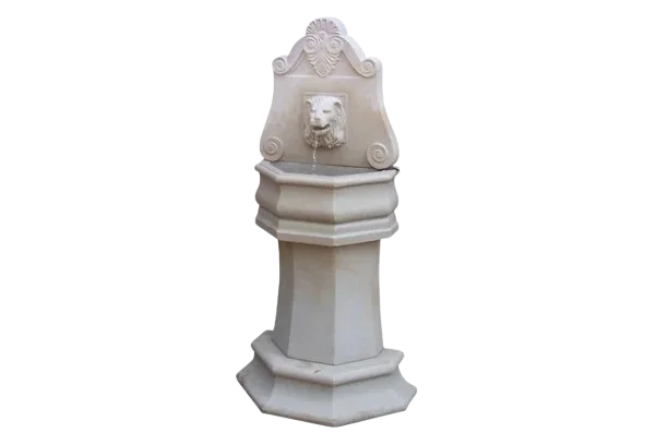 A majestic water feature, hewn from the heart of Gwalior mint sandstone. Its classical design, adorned with a lion's head and shell motif, whispers tales of ancient grandeur. Water cascades from the lion's maw, a testament to Neptune's dominion over water, creating a serene symphony that enchants every courtyard it graces.The fountain's design suggests that it could be placed in a garden, courtyard, or public space, serving both as a functional water source and as an ornamental feature. The craftsmanship and materials suggest a durable and elegant structure, likely intended for outdoor use.