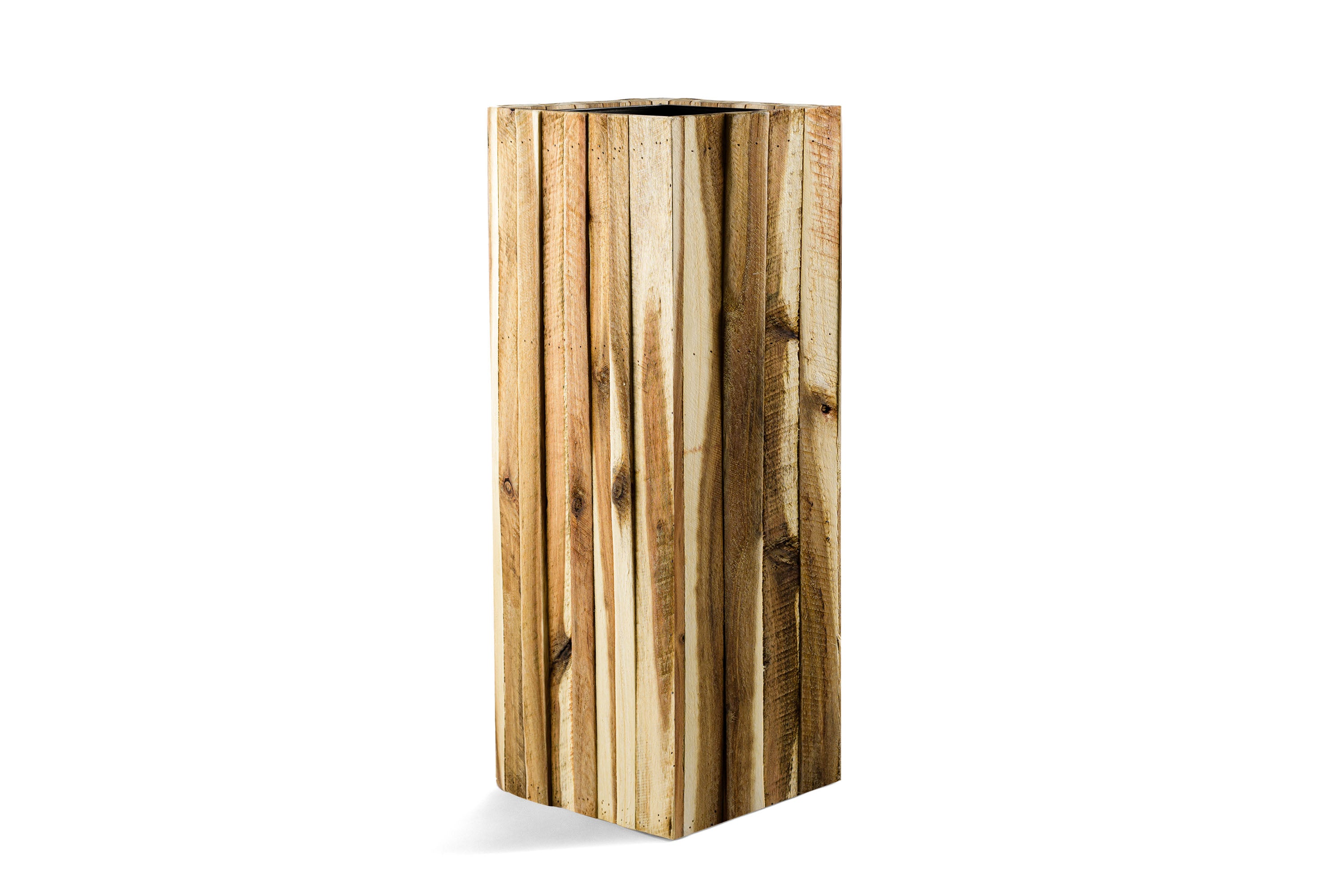 This planter is a stunning piece crafted from rich, sustainably sourced tropical wood, bringing a touch of paradise to any space. Its warm hues and natural grain patterns make each planter unique, while the smooth, polished finish enhances its elegant appearance. Designed to withstand the elements, the planter is perfect for both indoor and outdoor use, providing a beautiful home for your favorite plants. Its sturdy construction ensures durability, and its spacious interior offers ample room for roots to thrive. It comes along with watertight inserts made of recycled plastic. Whether adorning a patio, balcony, or living room, it captures the essence of tropical beauty and serenity.