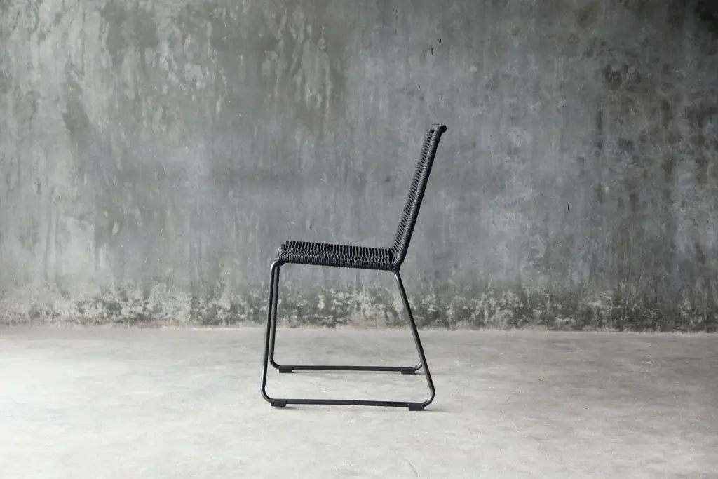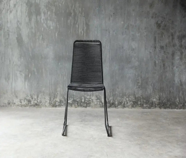 Single Chair Pang Side Chair's sleek steel frame is given texture and sophistication by its exquisite handwoven polyproplyene rope backrest and steel legs. It is perfect for lounging in your balconies or patios.