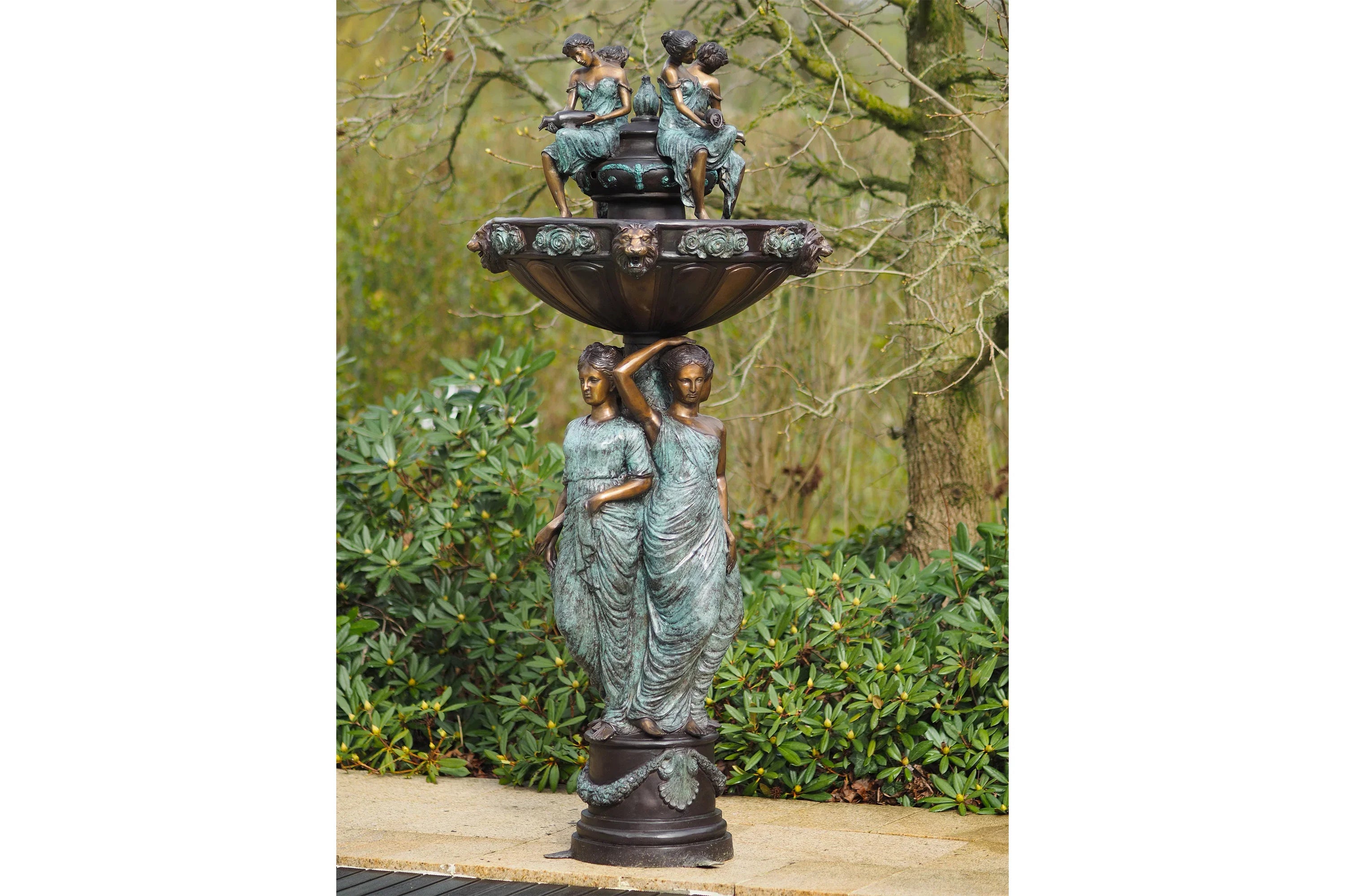 Behold, a resplendent fountain of bronze, its grandeur echoing the bygone colonial era. Four elegant ladies, cast in the same enduring metal, stand sentinel over it. Their poised figures, frozen in time, add a touch of grace and nobility, making this fountain not just a water feature, but a testament to the artistic prowess of its creators.
