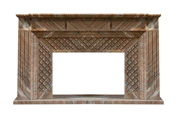 This fireplace is a testament to the minimalist design philosophy that characterizes the modern era. It is characterized by its clean lines and polished finish, which exude an air of refined simplicity. The fireplace is crafted from Green forest marble which is both durable and aesthetically pleasing.