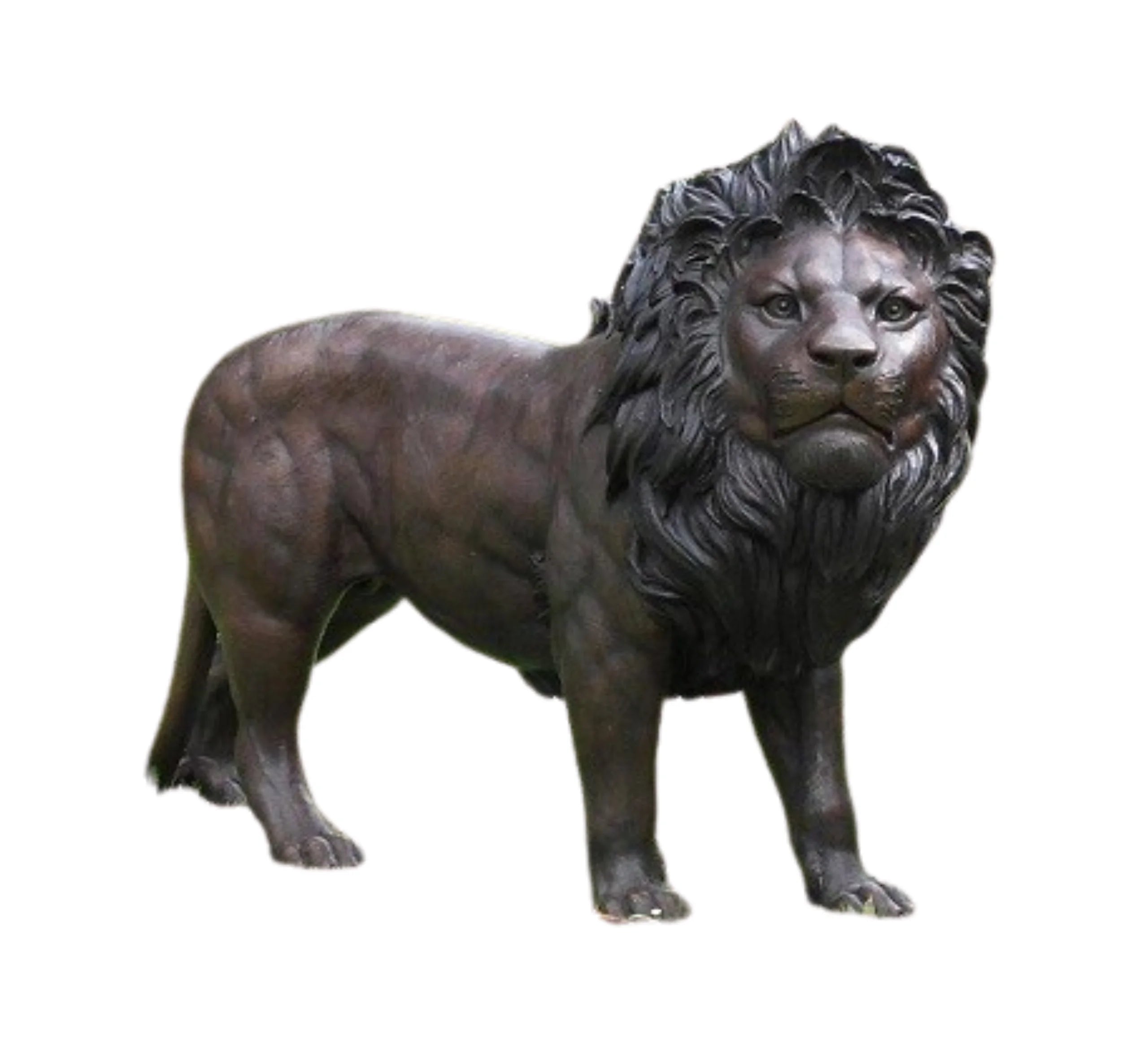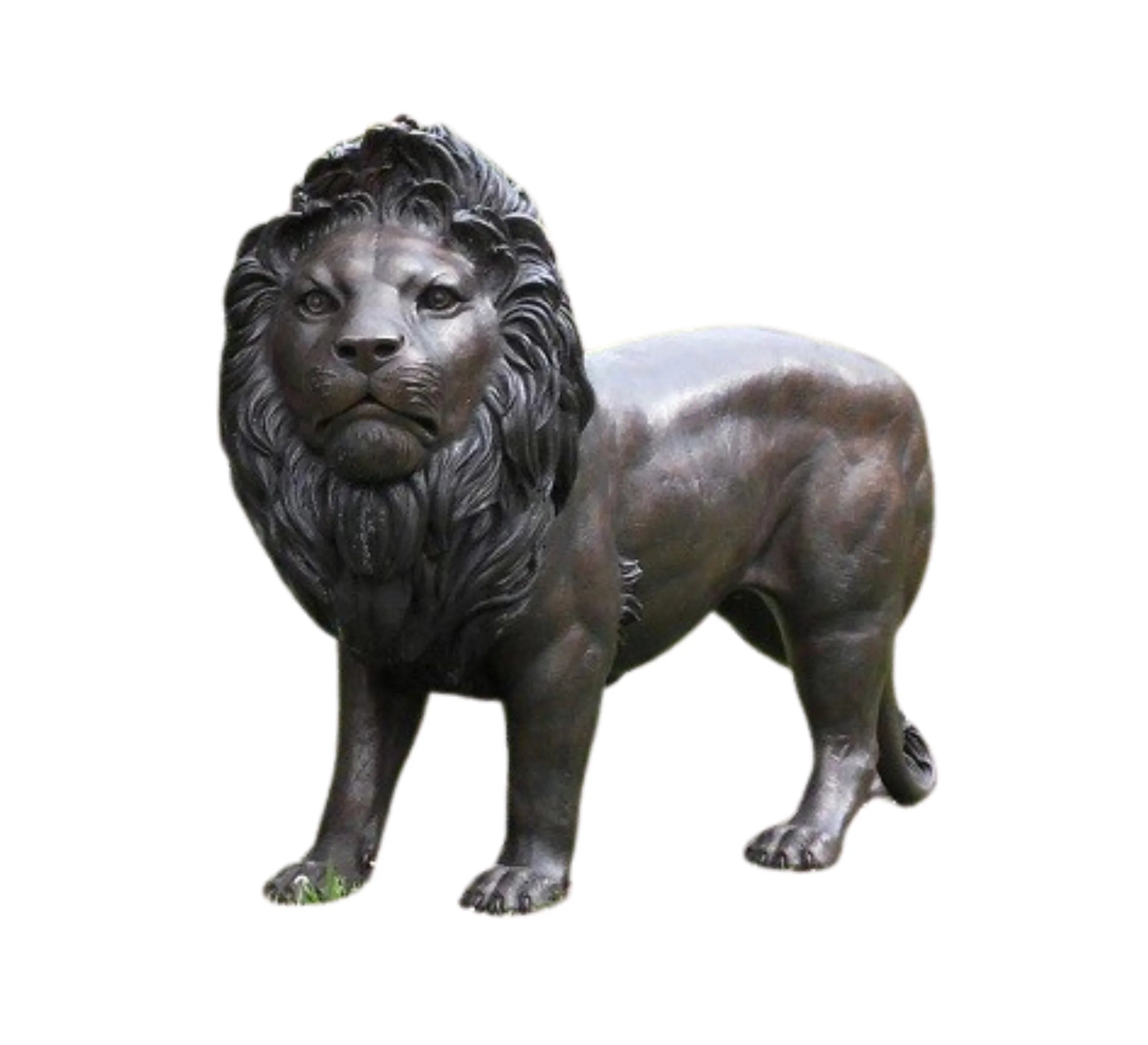 The Silent Hunter is a powerful bronze sculpture of a lion poised and ready to pounce, capturing the raw energy and strength of this majestic predator. With its muscles tensed, eyes focused, and body in a stance of quiet anticipation, the lion exudes an aura of dominance and grace. The rich, warm tones of the bronze, enhanced with subtle patinas, emphasize the lion's detailed mane, sharp claws, and powerful form. Perfect for installation in a garden, The Silent Hunter serves as a striking focal point, symbolizing courage, focus, and the untamed beauty of nature.