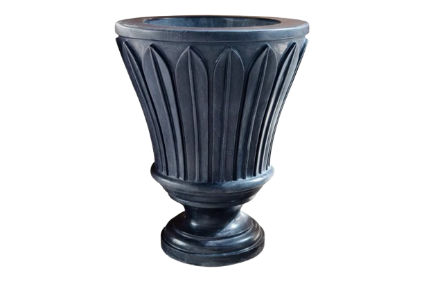 This black marble planter embodies elegance and grandeur, with its detailed carvings and polished surface. The fluted bowl and ornate base create a striking, classical look that adds dramatic sophistication to any setting. Perfect for adding a touch of sophistication to gardens or interior spaces, this planter serves as a stunning focal point.
