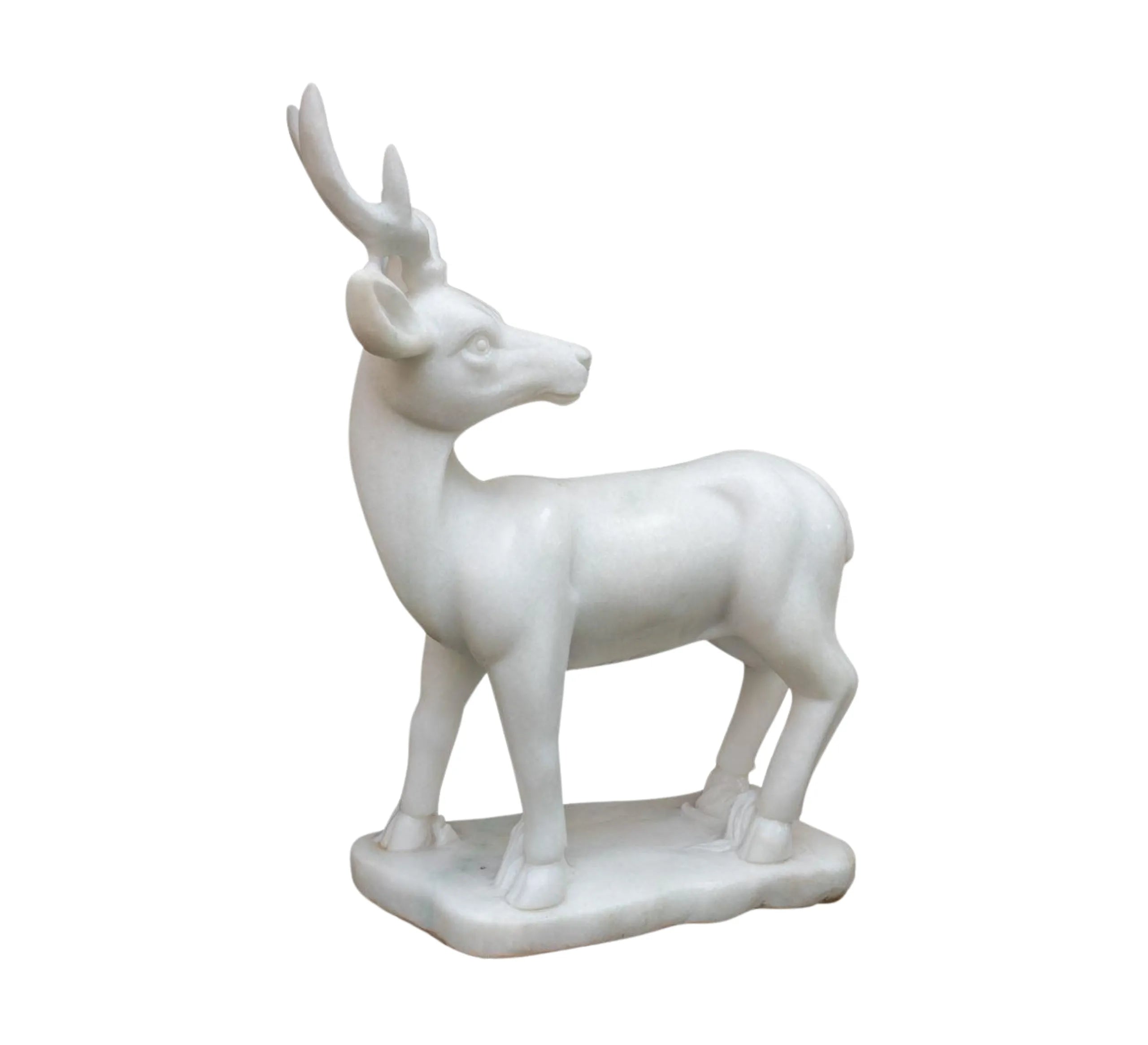 This majestic deer sculpture is intricately carved from pure marble, capturing the grace and strength of the animal in a lifelike stance. With its tall, elegant antlers and poised expression, it exudes a regal charm, making it a striking statement piece for gardens, entrances, or luxury interiors.