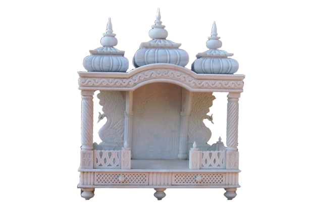 A hand-carved white marble mandir epitomizes the zenith of artisanal craftsmanship and spiritual elegance. Fashioned from the finest quality white marble, each mandir is a masterpiece, adorned with intricate carvings that depict divine motifs and exquisite floral patterns, reflecting a profound reverence for the sacred. Its lustrous surface exudes an air of opulence, creating a serene sanctuary for worship and meditation. Customizable to suit individual aesthetics, these mandirs seamlessly blend artistry with tradition, serving as a timeless centerpiece that elevates the spiritual ambiance of any abode.